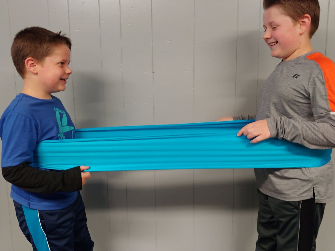 A stretchy band made from the same fabric as our popular compression sheets and body socks! Use the band for games, exercises, strengthening, targeted compression and more! Many of the activities in our Body Sock Activity Cards can be performed with a compression band. Your children will have so much fun, they'll have no idea they're doing therapy! The sensory input provided by compression has been shown to help reduce anxiety, settle minds, and help with focus. Bands are great for home or the classroom. The bands can also be stretched over a mattress like our compression sheets for targeted compression in specific areas.